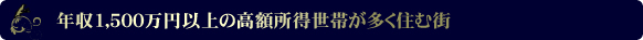 年収1,500万円以上の高額所得者が多く住む街を上記のマップにあらわしました。 ※町丁目単位で上位150位までを対象とする 23区の港区をはじめ、世田谷区・大田区・渋谷区など、主に西側のエリアが富裕層に圧倒的に支持されている事がわかります。